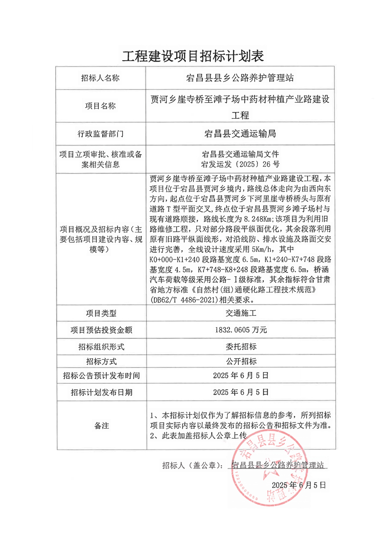 賈河鄉(xiāng)崖寺橋至灘子場中藥材種植產(chǎn)業(yè)路建設(shè)工程
