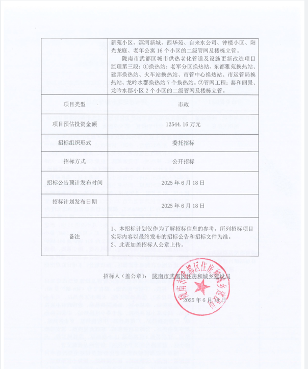 隴南市武都區(qū)城市供熱老化管道及設(shè)施更新改造項目監(jiān)理