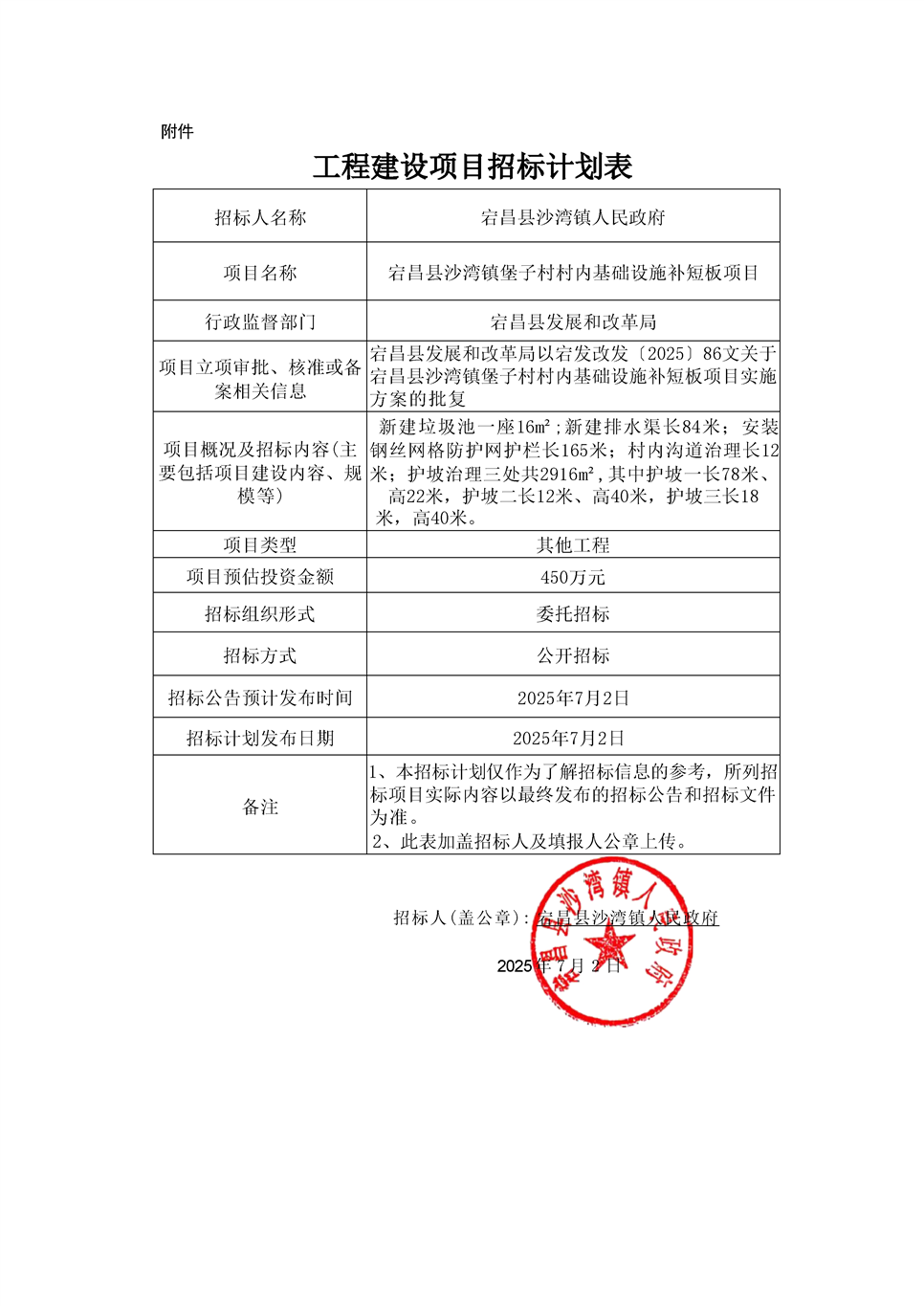 宕昌縣沙灣鎮(zhèn)堡子村村內基礎設施補短板項目