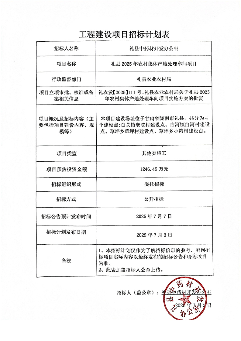 禮縣2025年農(nóng)村集體產(chǎn)地處理車(chē)間項(xiàng)目