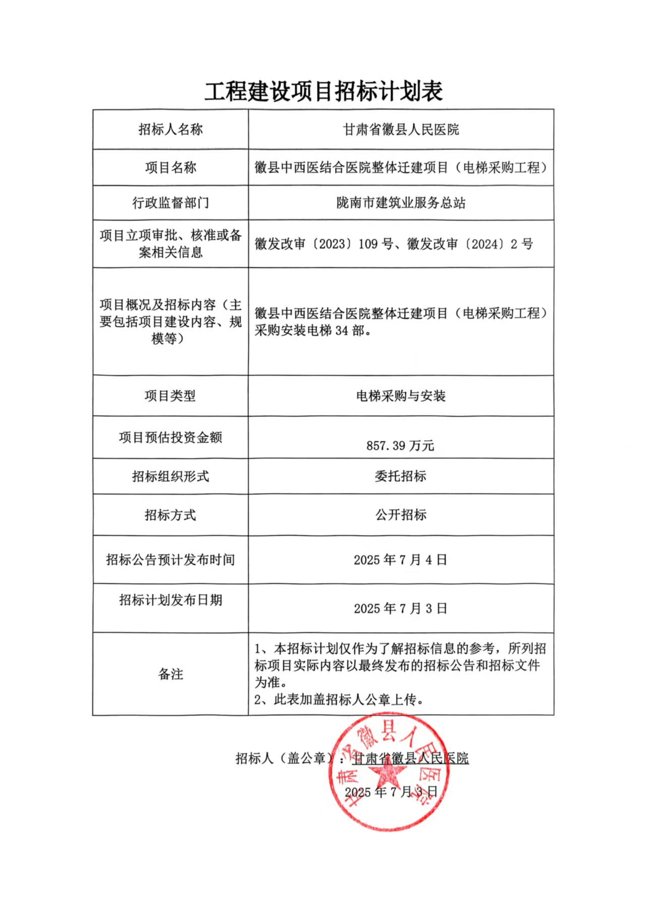 徽縣中西醫(yī)結(jié)合醫(yī)院整體遷建項(xiàng)目(電梯采購(gòu)工程)