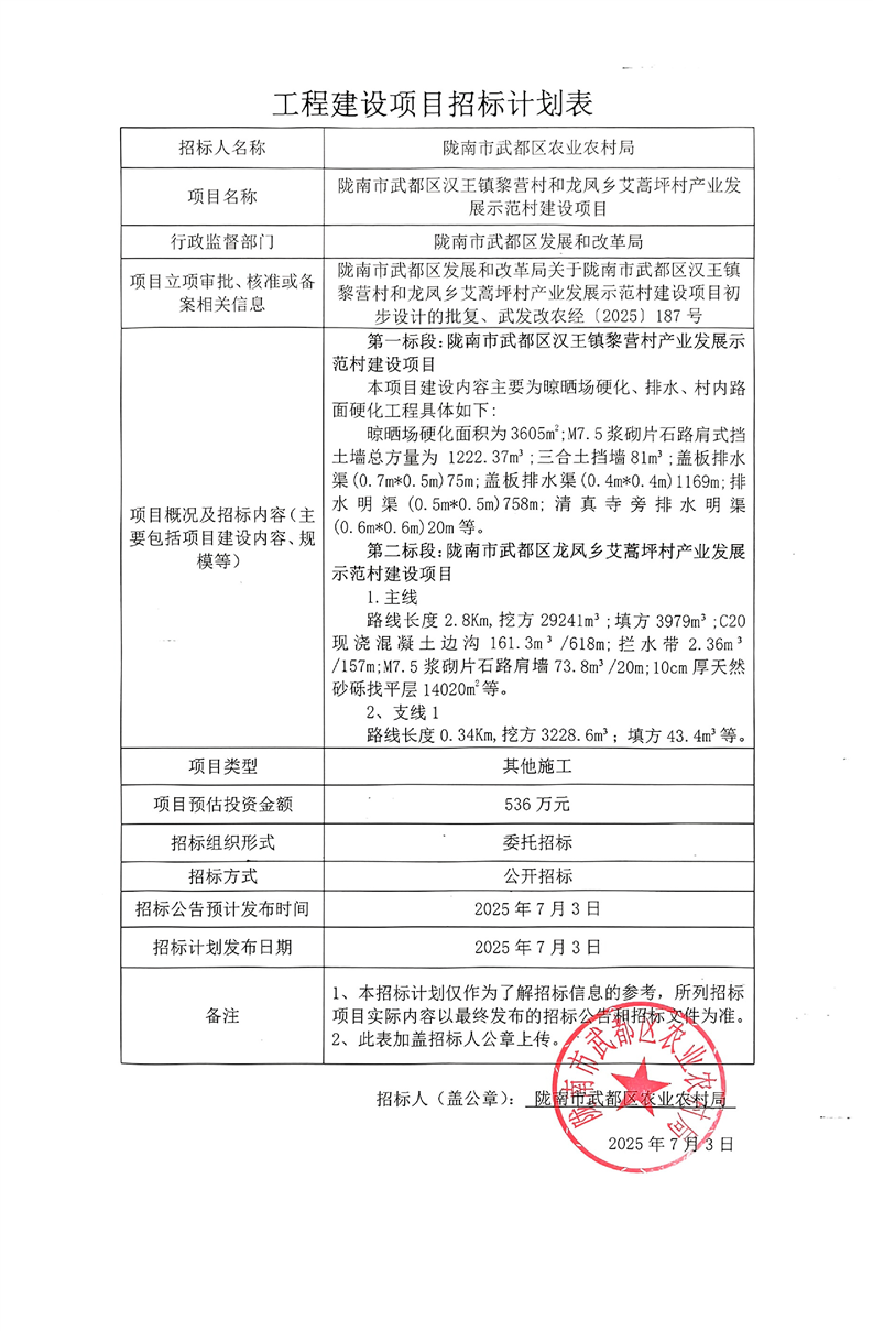 隴南市武都區(qū)漢王鎮(zhèn)黎營村和龍鳳鄉(xiāng)艾蒿坪村產(chǎn)業(yè)發(fā)展示范村建設項目