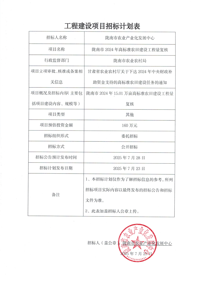隴南市2024年高標準農(nóng)田建設工程量復核