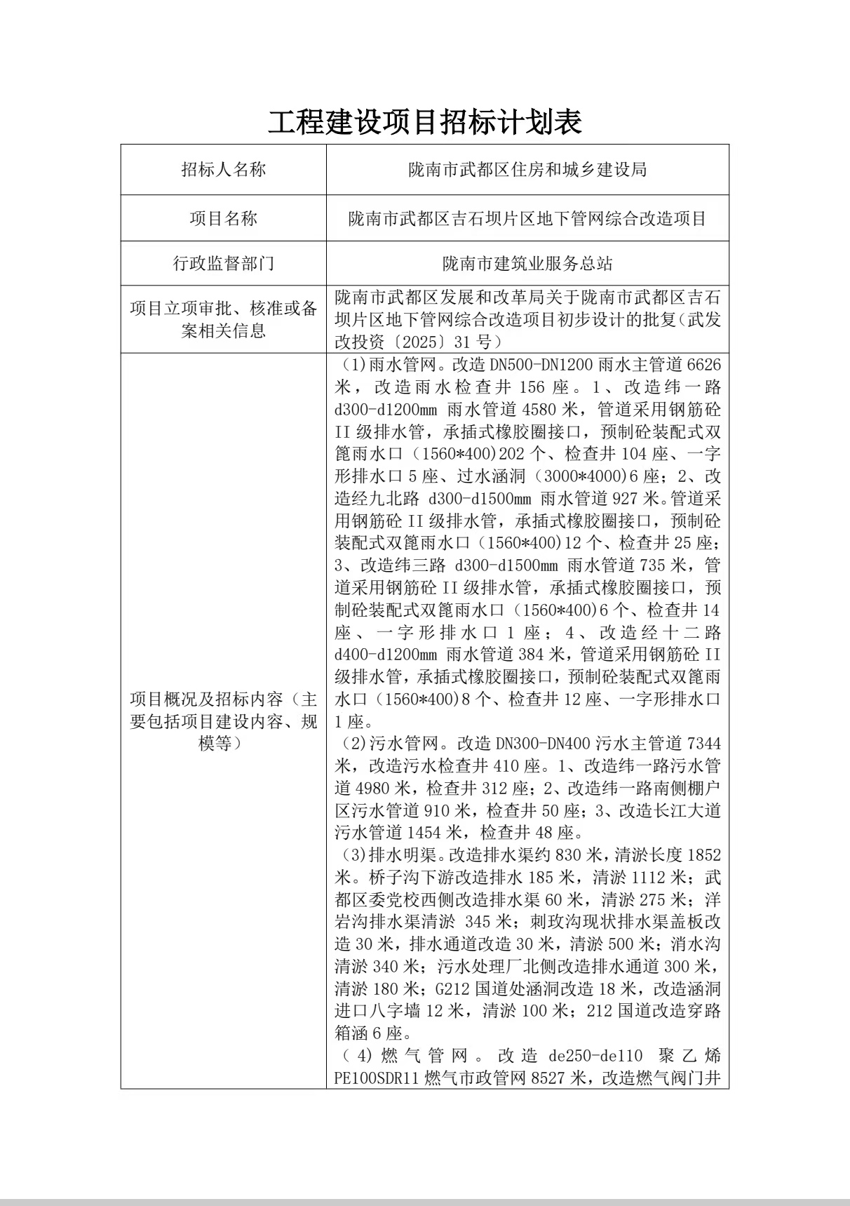 隴南市武都區(qū)吉石壩片區(qū)地下管網(wǎng)綜合改造項目