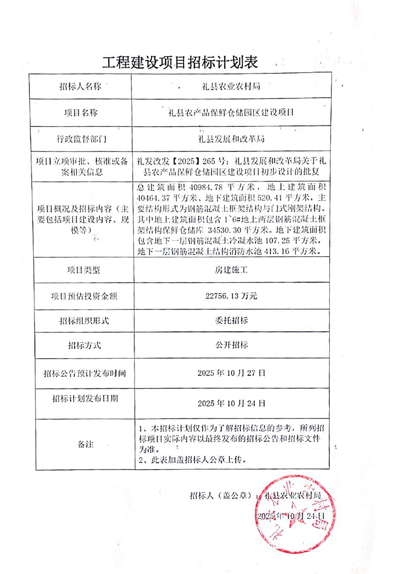 禮縣農(nóng)產(chǎn)品保鮮倉(cāng)儲(chǔ)園區(qū)建設(shè)項(xiàng)目