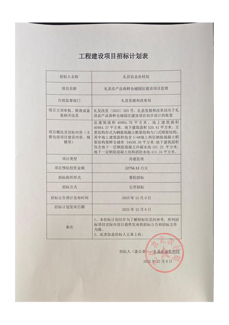 禮縣農(nóng)產(chǎn)品保鮮倉儲園區(qū)建設(shè)項(xiàng)目監(jiān)理