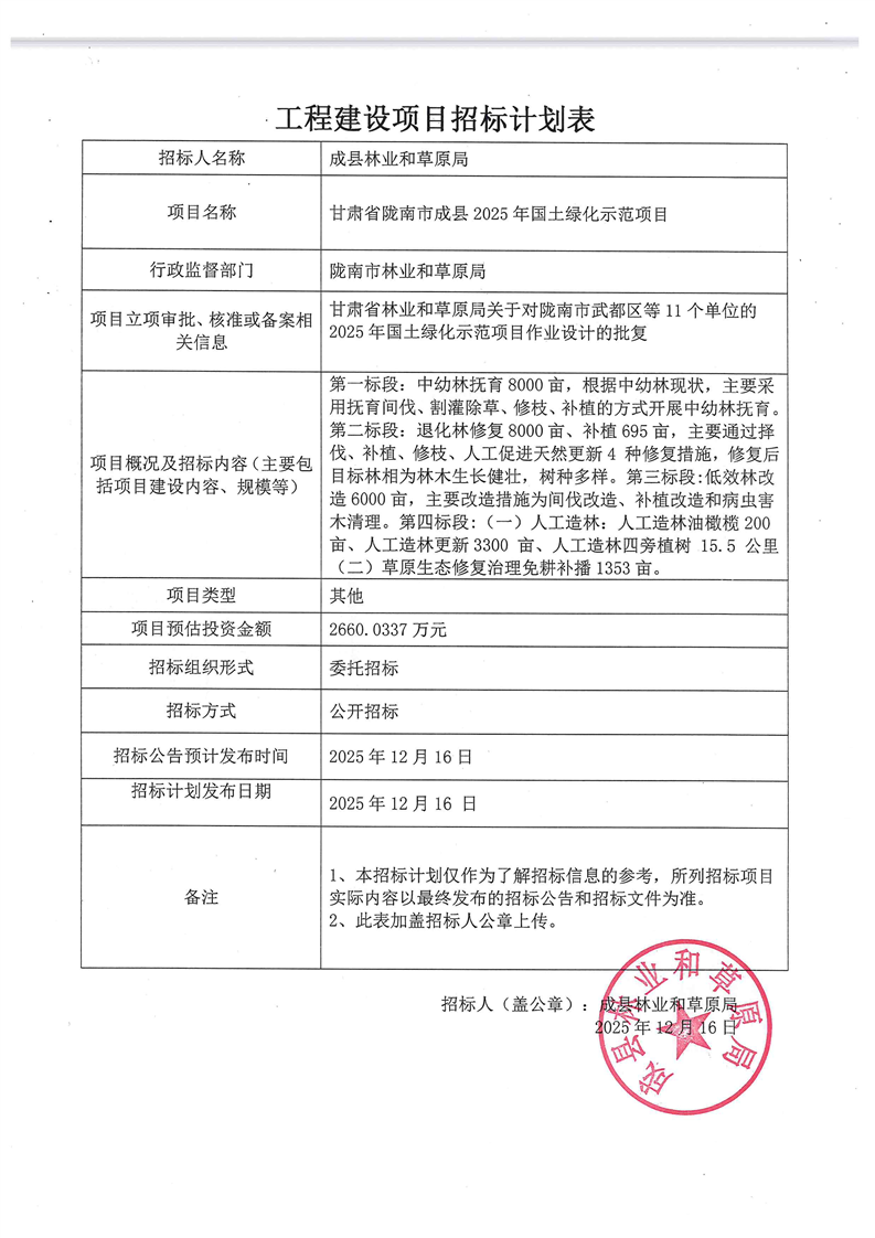 甘肅省隴南市成縣2025年國土綠化示范項(xiàng)目