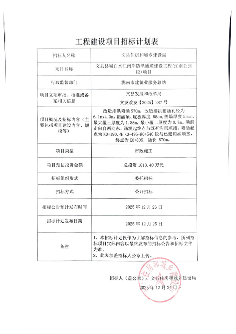 文縣縣城白水江南岸防洪通道建設(shè)工程(江南公園段)項(xiàng)目