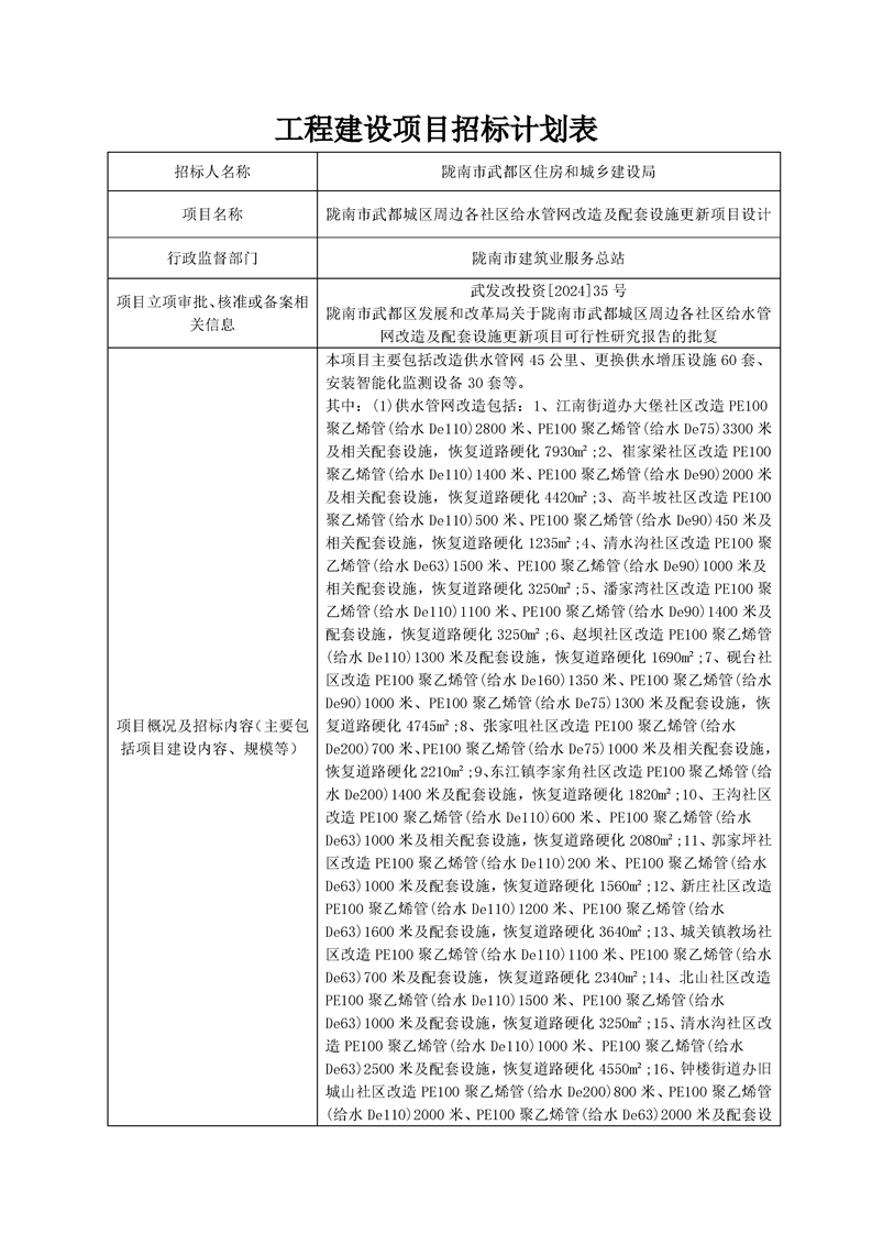隴南市武都城區(qū)周邊各社區(qū)給水管網(wǎng)改造及配套設(shè)施更新項目設(shè)計