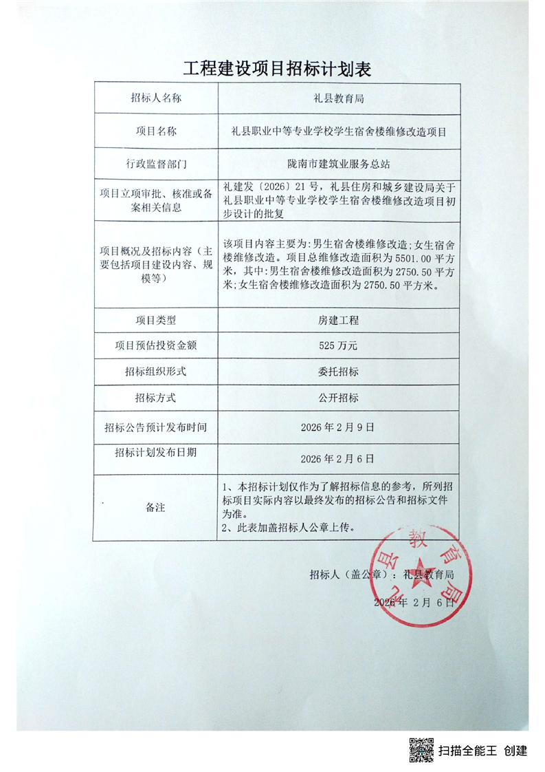 禮縣職業(yè)中等專業(yè)學(xué)校學(xué)生宿舍樓維修改造項目
