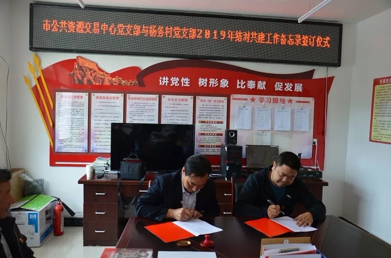 根據(jù)《中共隴南市委組織部關(guān)于扎實(shí)做好幫扶單位黨組織與貧困村黨組織結(jié)對攻堅工作的通知》要求,市公共資源交易中心黨支部與武都區(qū)黃坪鎮(zhèn)楊務(wù)村黨支部在4月啟動開展結(jié)對共建活動基礎(chǔ)上,組織召開雙方黨支部結(jié)對共建工作聯(lián)席會,進(jìn)一步探討和完善結(jié)對共建方案,簽訂了《隴南市公共資源交易中心黨支部與武都區(qū)黃坪鎮(zhèn)楊務(wù)村黨支部2019年結(jié)對共建工作備忘錄》。