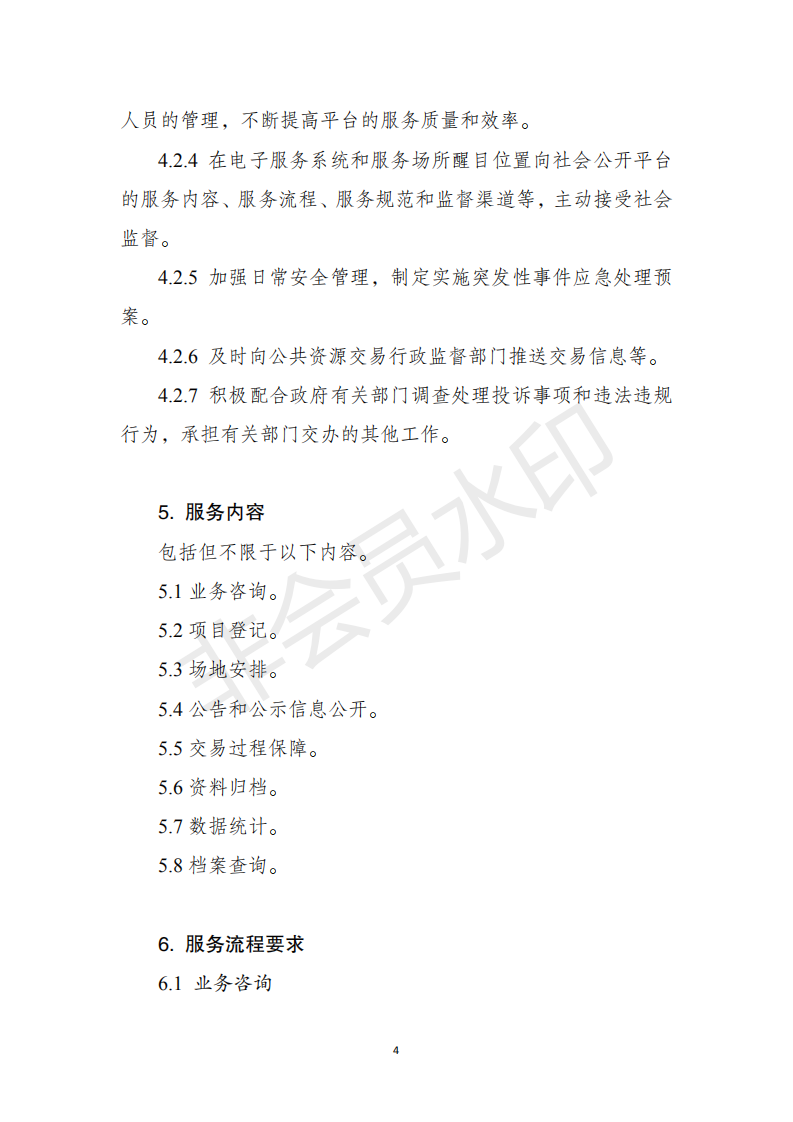 ??一、各地區(qū)應(yīng)根據(jù)有關(guān)法律法規(guī)及《標(biāo)準(zhǔn)》,按照簡(jiǎn)化流程、提高效率、公開透明的要求,結(jié)合本地實(shí)際,制定本行政區(qū)域的公共資源交易平臺(tái)服務(wù)標(biāo)準(zhǔn),以標(biāo)準(zhǔn)化推進(jìn)全流程電子化、服務(wù)便捷化。